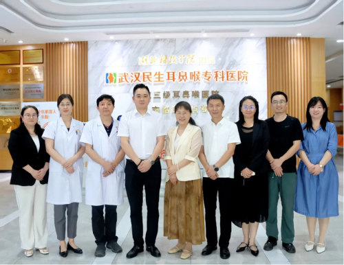 为探索医学教育改革的新路径,促进校院协作的全面升级,2025年6月24日下午,湖北科技学院口腔与眼视光医学院院长周燕红携党委副书记程鹏、学工办主任周彦一行前往湖北科技学院附属耳鼻喉医院(武汉民生耳鼻喉专科医院)进行调研指导。此次调研由民生五官科医疗集团常务副总兼武汉院区院长禹爽、医疗院长姚行齐、行政院长陈洪俊、院办主任刘琛、人力资源总监曾艳和行政副总监彭慧芳全程陪同。