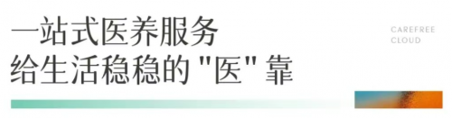 基于对长者医疗需求的深度考量,栖境云庐规划医养中心,可实现体检、健康管理、中西医门诊等功能,此外,更搭建省市医疗服务体系,打破与优质医疗资源的距离与壁垒,为长者健康生活护航。